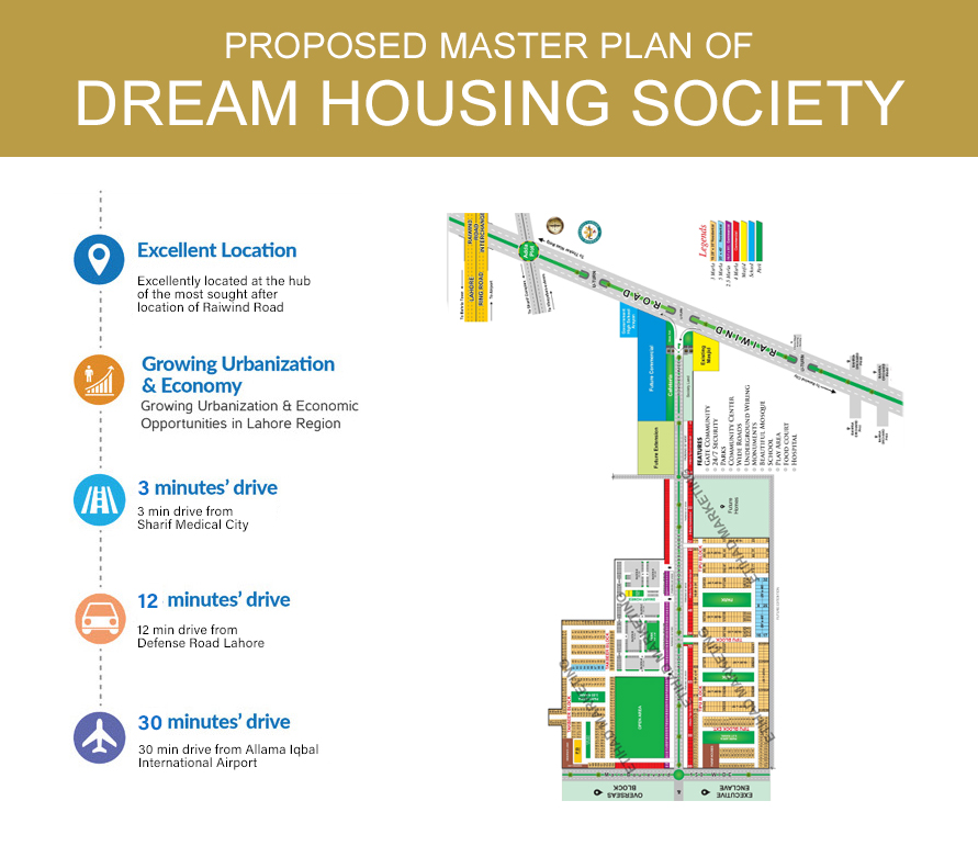 Dream Housing is one of the leading housing projects in the vicinity of Raiwind Road close to Ring Road (L-20).The project is fostering a contemporary lifestyle with all the facilities and state-of-the-art town planning that add worth to the housing project.